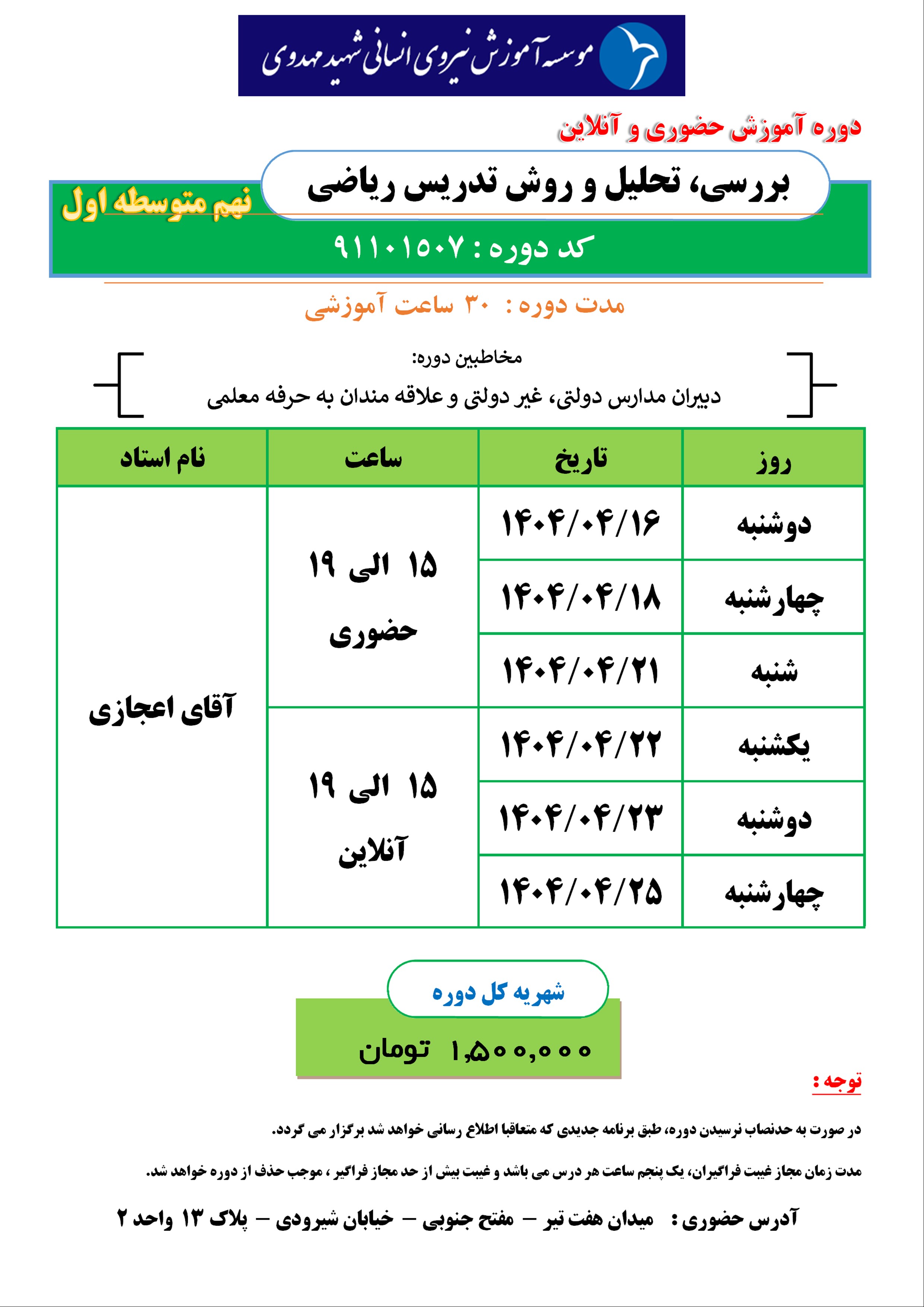 • ممکن است کلاس مورد نظر شما به علت نوع برگزاری و عوامل دیگر، شهریه ای متفاوت از شهریه پایه دوره داشته باشد