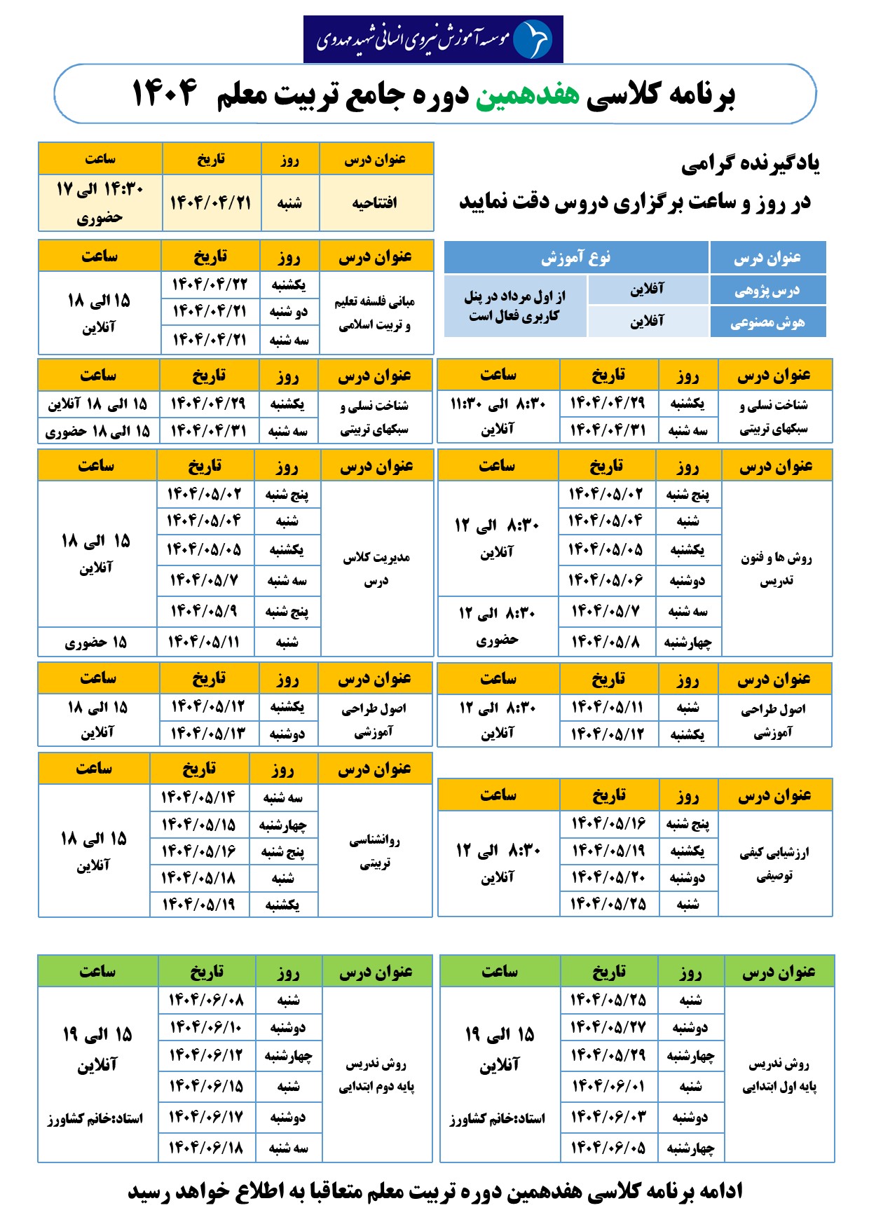 تاریخ شروع کلاس: نیمه اول تیر ماه 1404